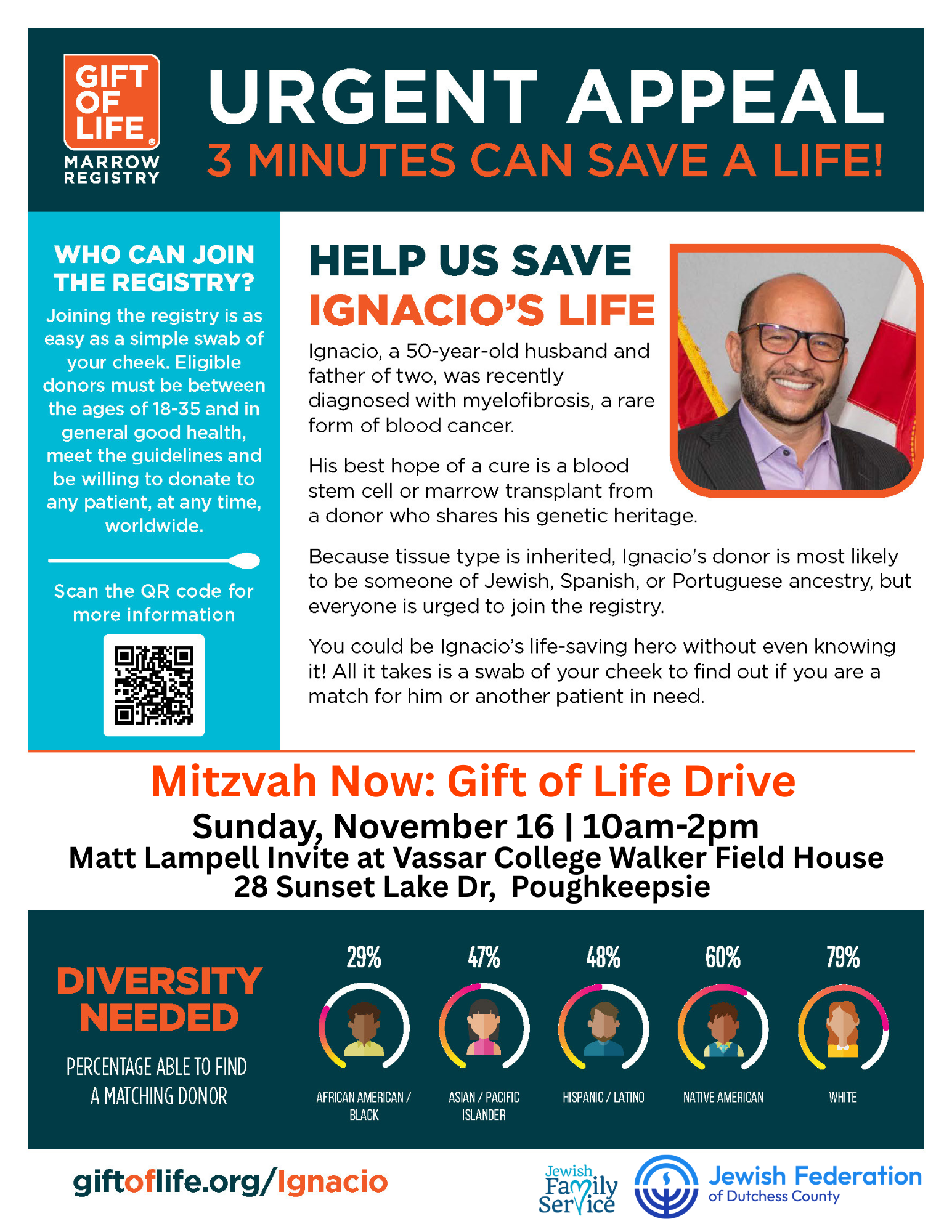 A simple cheek swab could be the match that saves someone’s life - like Ignacio, a 50-year-old father and husband recently diagnosed with a rare blood cancer. His best hope is a donor with Jewish, Spanish, or Portuguese ancestry, but everyone is encouraged to register!